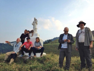 Y nos fuimos en camperos hasta la región de La Meseta6, por la vía “de rieles”, una vía con una pendiente no comprensible en algunos tramos, pero antes visitamos la hacienda Suiza-Mejía antiguamente de la familia suiza Heiniger, donde el burro Carolo vio la luz y se convirtió en un semental de hermosas mulas de paso fino que se exhiben en el festival anual de asnales, mulares y capones, en el mes de julio. Al regreso, siguiendo la sabia recomendación de Felipe, decidimos usar la vía tradicional porque eso de ser padres responsables no permite un retorno tan agreste. En la meseta visitamos la Capilla del Sagrado Corazón de Jesús y el nuevo Centro educativo.